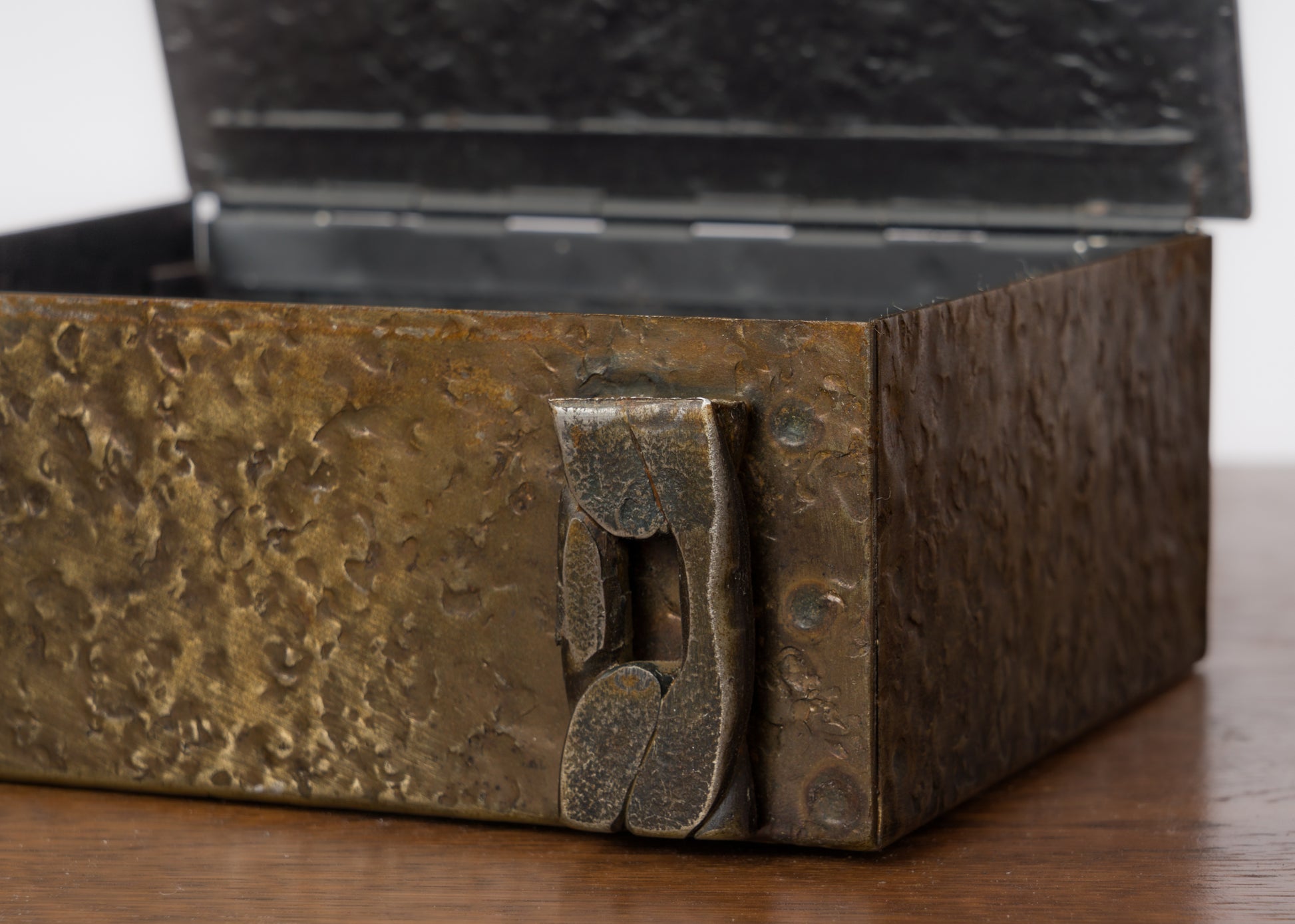 Curb Chain Brutalist "Martelé" Patinated Steel Decorative Box - France 1970's
