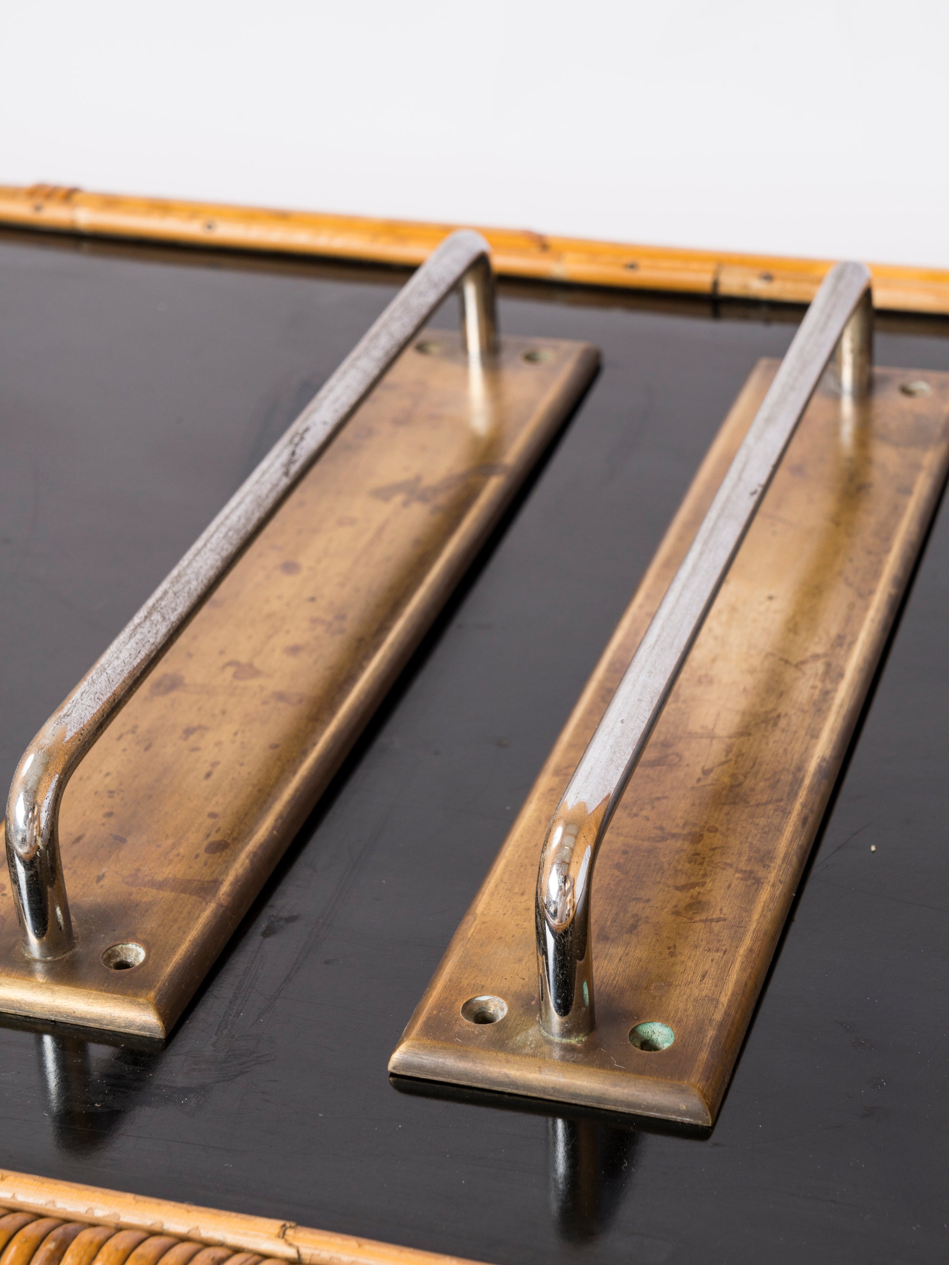 Minimalist Brass & Steel Rectangular Door Handles - France 1970's